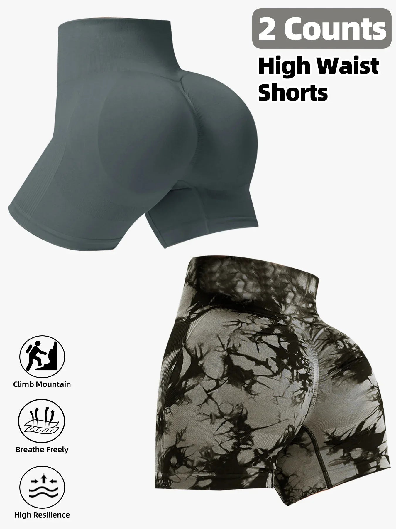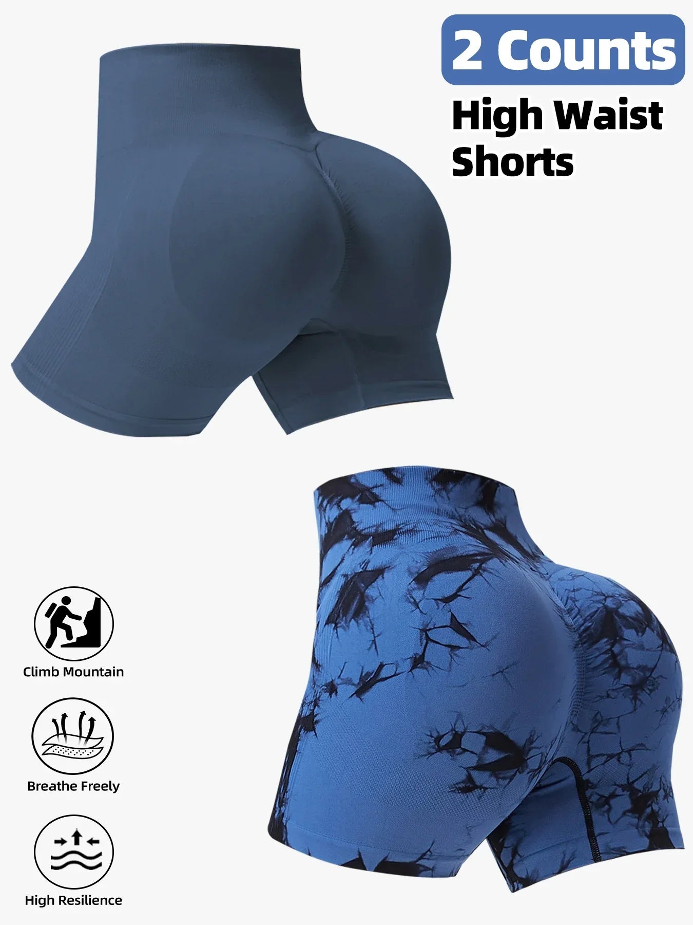 1/2/3/4pcs Women's Tie-Dye Seamless High-Waist Cycling Short Leggings