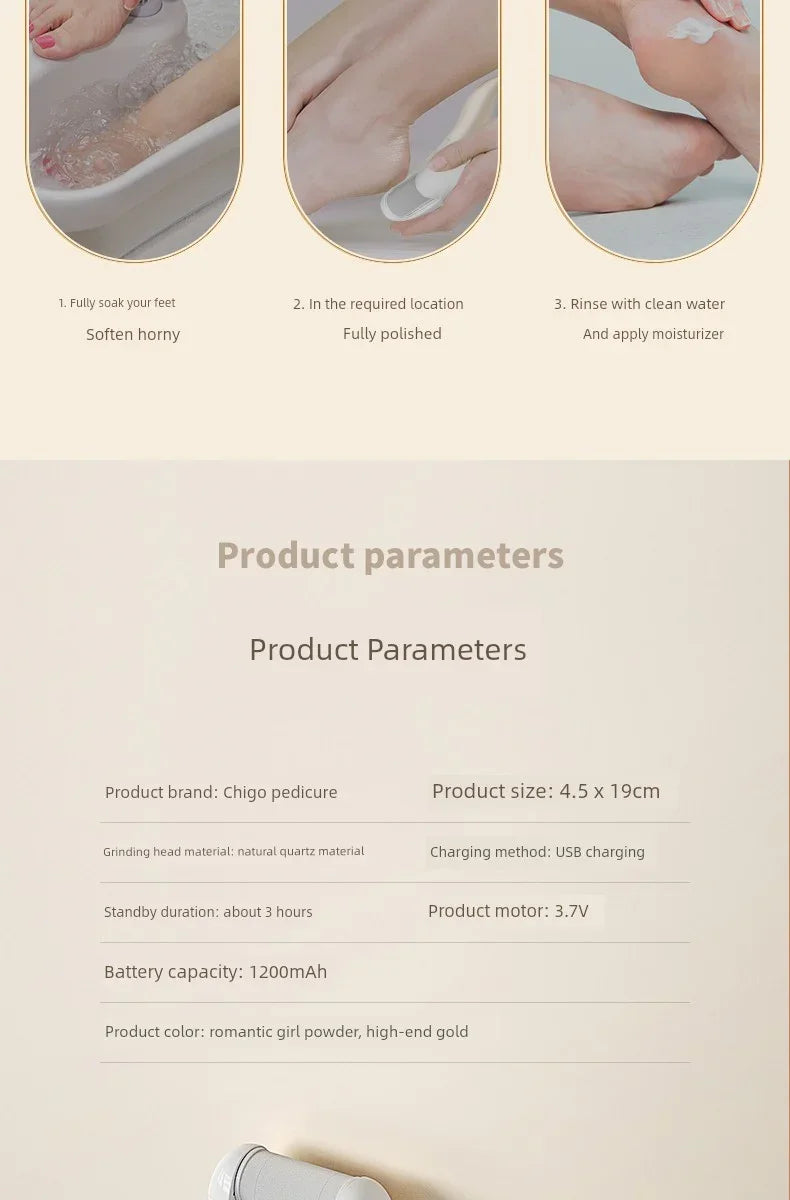 The Chigo Electric Foot Callus Remover Rechargeable Automatic Exfoliating Kit offers an effortless solution to restore smooth, healthy feet at home. This pedicure device is expertly designed to tackle dead skin and calluses safely and efficiently, eliminating the need for costly salon appointments. Its rechargeable and cordless design provides ultimate convenience, allowing you to refresh your feet anytime, anywhere.