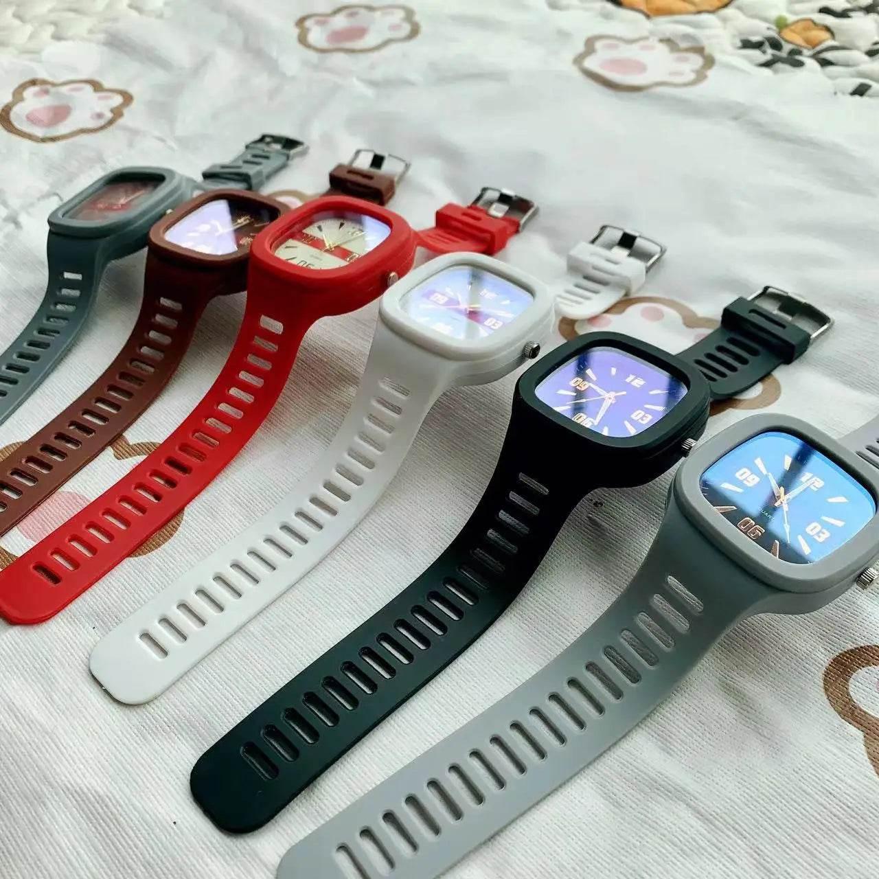 - Featuring a modern 40 mm square resin case paired with a soft, flexible silicone strap, it offers exceptional comfort and contemporary elegance.