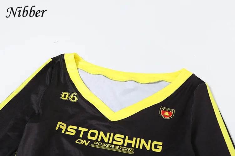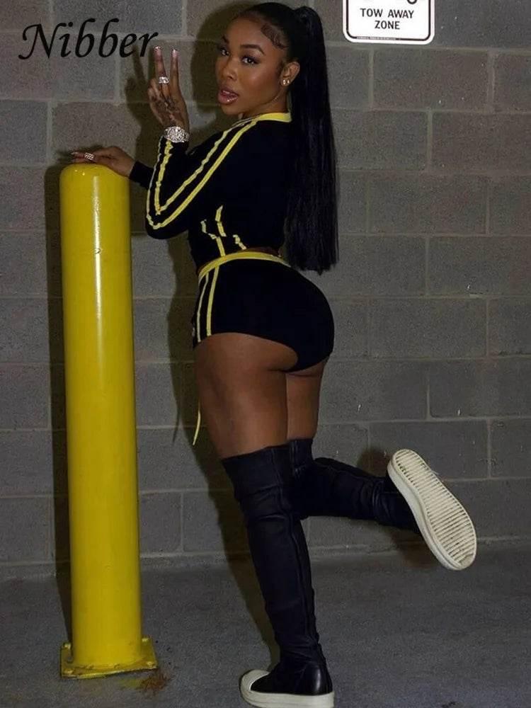 Nibber Women Tracksuit 2 Piece Set Stroke Tight Hipster Letter Print Sporty Casual Crop Tops+Shorts Vitality Matching Outfits