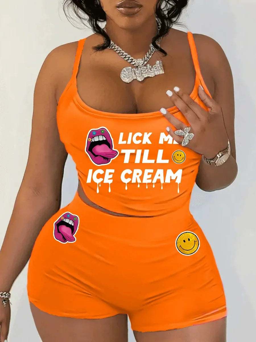 Sexy Spaghetti Strap Crop Tops And Short 2 Piece Sets