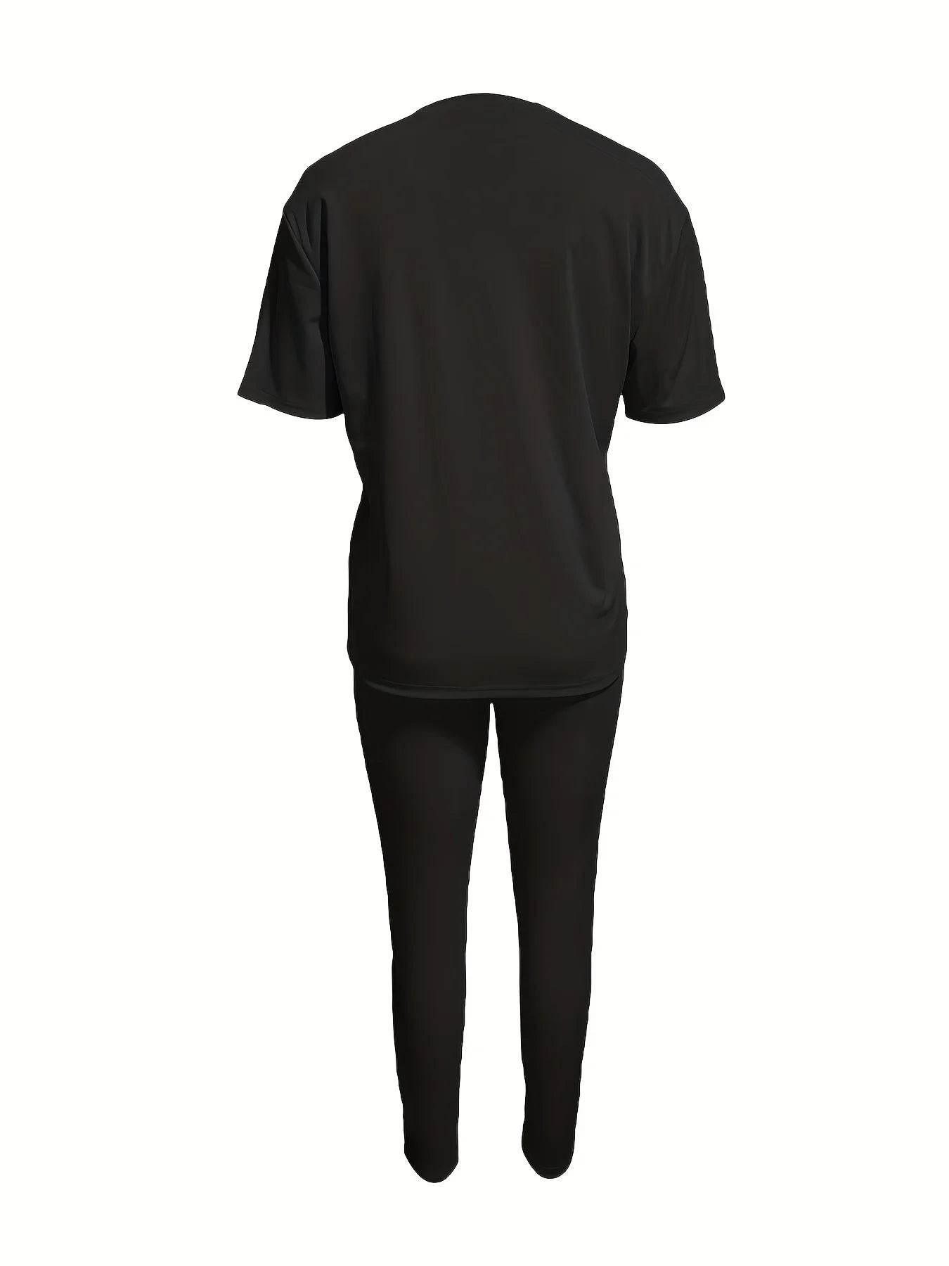 The Women's LOVER BEAR print casual loose fit large round neck short sleeved T-shirt with tight bottomed pants two-piece set is designed precisely to solve these issues. This outfit balances comfort and style perfectly, featuring: